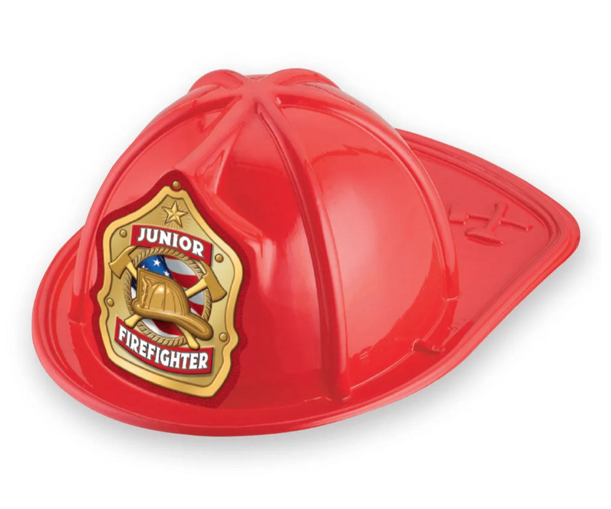 - Child-sized firefighter hat with a shield sticker displaying our stock design