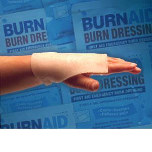The Burnaid Sterile Gel Dressing consists of sterile gel impregnated burn dressings and sachets and tubes of gel, for the immediate first aid treatment of burns. Burnaid rapidly cools the burn helping to prevent further tissue damage and aid the healing process, and offers the patient rapid and ongoing pain relief.Burnaid Gel consists of in excess of 90% water trapped in a proprietary gel, containing a small percentage of Melaleuca Oil – a naturally occurring substance, steam distilled from the leaves of the Australian Melaleuca alternifolia tree. Melaleuca Oil is a proven antiseptic, which exhibits local anaesthetic and antiinflammatory properties.