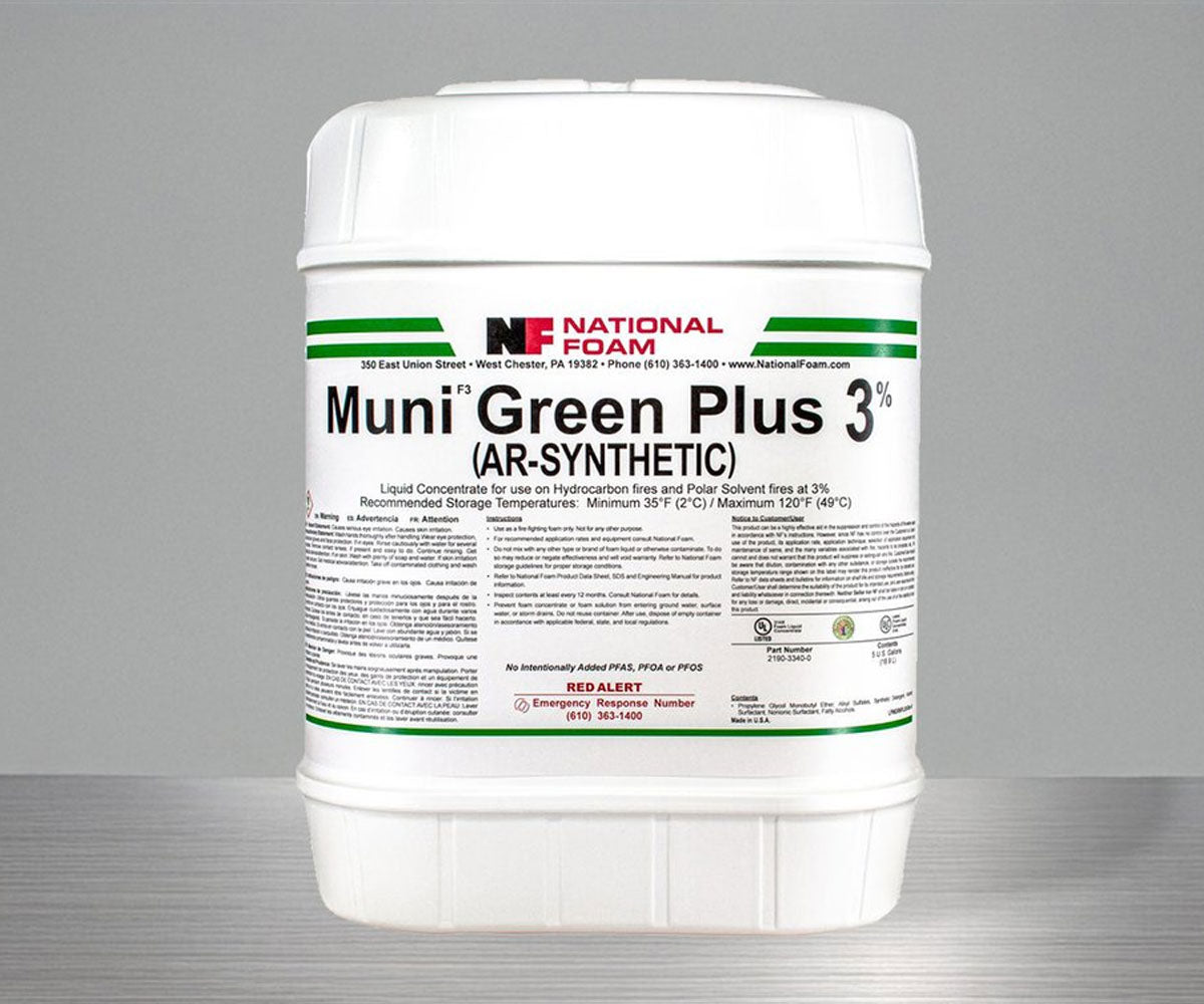 Muni®F3 Green Plus 3% Alcohol Resistant Synthetic Fluorine Free Foam (AR-SFFF) concentrate is designed for municipal firefighting on Class B fires. This foam concentrate contains the dual functionality of a wetting agent on Class A fires as well. Muni®F3 Green Plus 3% AR-SFFF is formulated for use as a 3% solution on both hydrocarbon and polar solvent fuel fires and produces a vapor-sealing foam blanket that quickly spreads over the fuel surface to help deliver rapid control and extinguishment.