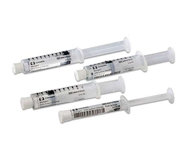 Syringes are filled with saline in a FDA-registered, cGMP controlled clean room. The Syrex Saline Flush syringes are 100% steam terminally sterilized, labeled and packaged in ready-to-use, unit-dose packaging. Prefilled catheter flush syringes provide the healthcare practitioner with a safe and effective alternative to manually drawing from multidose vials or manually filling flush syringes. Several studies have documented issues attributed to manually filled syringes.
