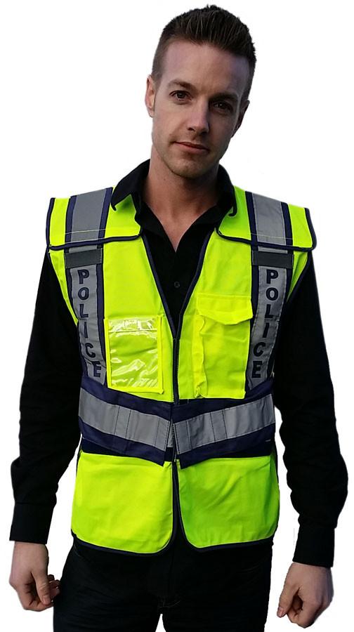 The ONLY adjustable breakaway vest. Meets the new ANSI/ISEA 207-2006: American National Standard for High-Visibility Public Safety Vests. Their breakaway design prevents entanglement. Easy on off with hook and loop front closure and fully adjustable sides. Added features include mic tab, clear badge chest pocket with closure and radio chest pocket with flap closure. Made with ANSI tricot fabric and reflective tape.