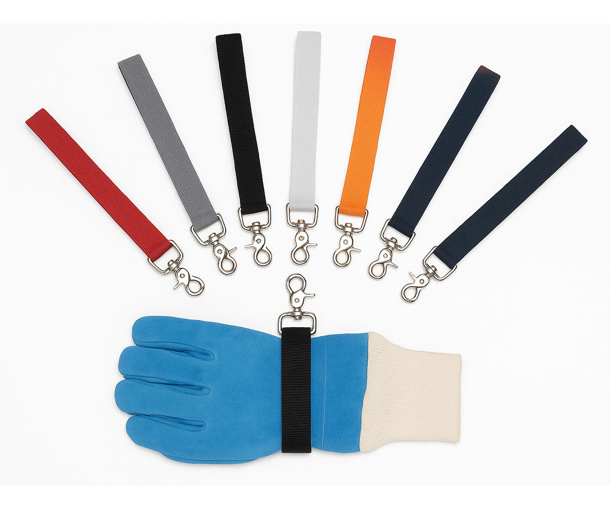 Firefighting gloves are often lost because turnout pockets are not easily accessible while wearing S.C.B.A. equipment. Glove Straps allow firefighters to securely attach fire gloves to turnout gear when the gloves are not in use.