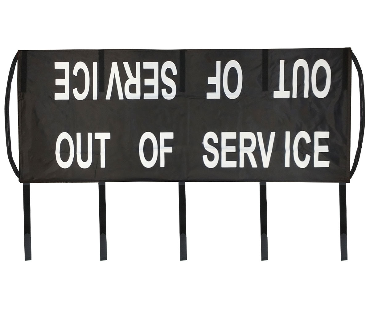 This weatherproof black nylon lightbar cover attaches to your lightbar with Velcro straps & elastic cynch straps. It has "OUT OF SERVICE" boldly printed across the cover. Universal size fits most types of lightbars on the market.