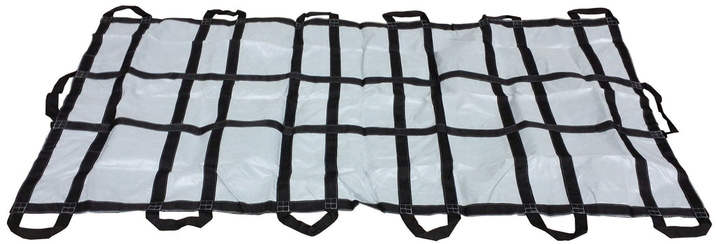 Measuring 38"W x 76.5"L, the MTR Mega Transfer sheet provides easy patient transfer for patients in narrow or hard to reach places. Able to hold up to 1500 pounds, the Mega Transfer Sheet is made of heavy duty cot materiel with 14 handles ( 6 on each side, and 2 at the ends.)