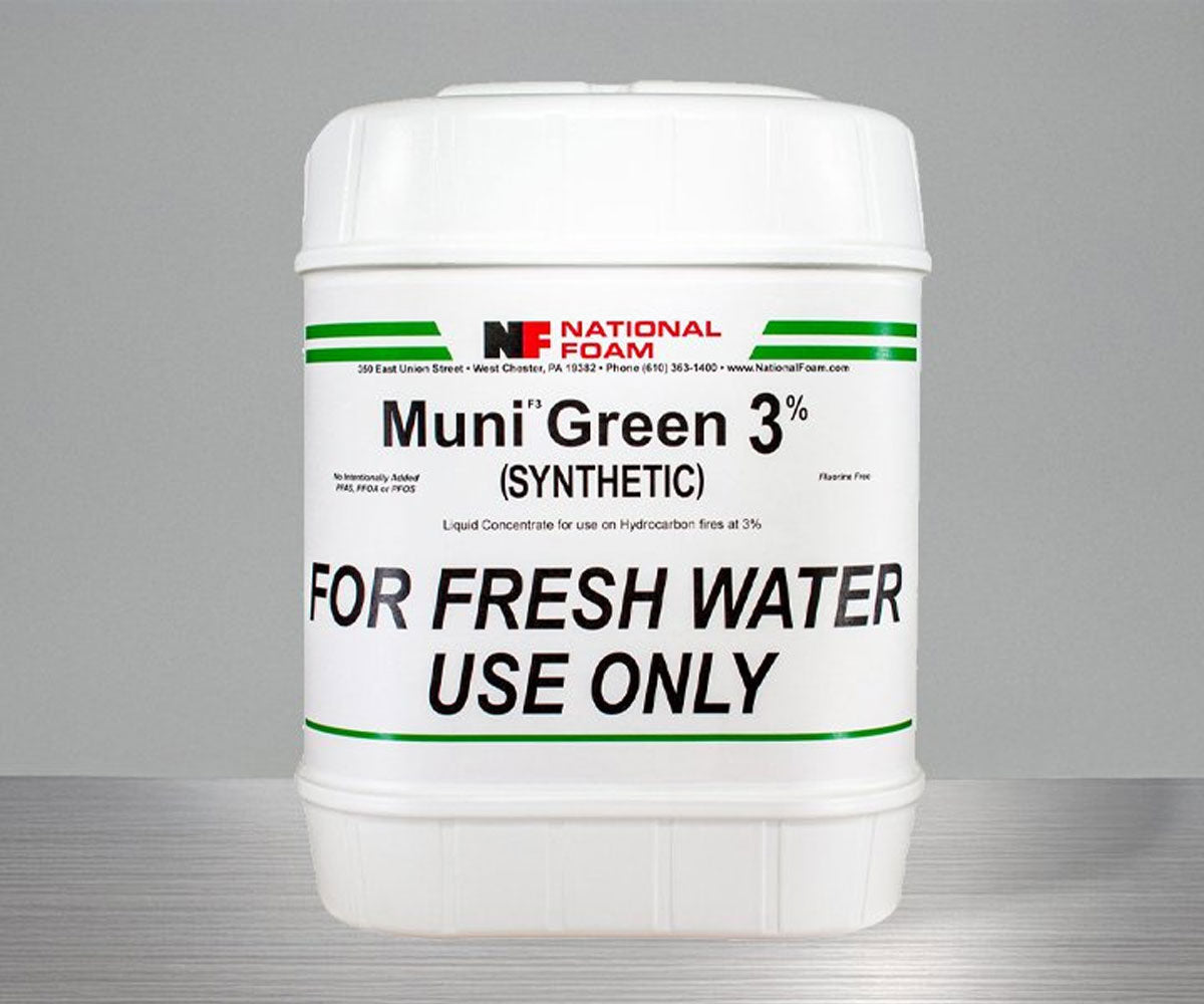 Muni®F3 Green 3% Synthetic Fluorine Free Foam (SFFF) concentrate is designed for municipal firefighting and produces a superior quality foam blanket on Class B hydrocarbon fires as well as Class A fires. The concentrate is formulated for use as a 3% solution on hydrocarbon fuel fires and produces a vapor-sealing foam blanket that quickly spreads over the fuel surface to help deliver rapid control and extinguishment.