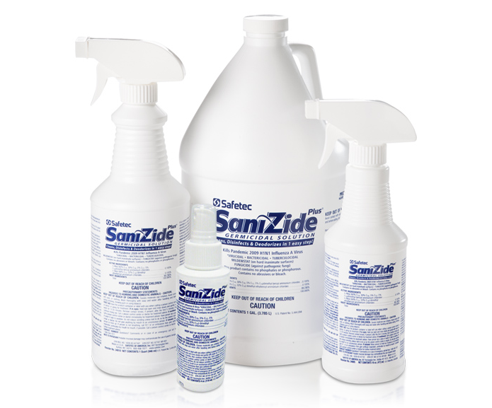 SaniZide Plus™ is a ready-to-use, hospital grade, hard surface disinfectant/deodorizer. Our Quaternary Ammonium, alcohol free formulation is non-flammable making SaniZide Plus™ safe to ship, as well as, non-corrosive. Choosing SaniZide Plus™ helps you to comply with the OSHA Bloodborne Pathogens Standard, which requires the use of an “appropriate disinfectant” that is tuberculocidal and virucidal against HIV-1 and HBV. For use on: glass, porcelain, ceramic, metal, polyethylene, polypropylene, vinyl, polyester, rubber, bakelite, and many more hard surfaces. For use in: industrial, institutional, commercial, medical and residential facilities, equipment and vehicles. EPA Registered. Now effective against Hepatitis C Virus (HCV)!