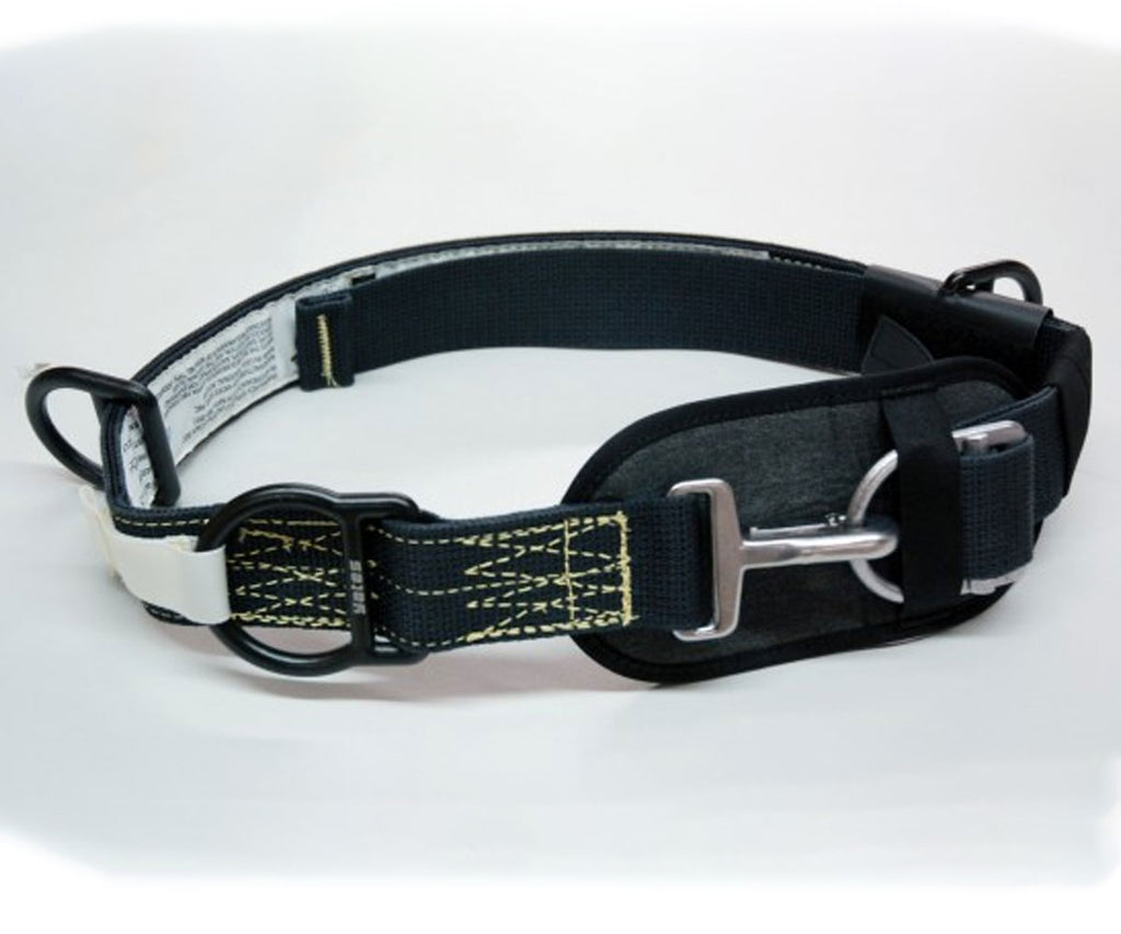 Kevlar Class I personal escape belt. Utilizes double locking quick connect snap hook and locking D ring adjustment system. Constructed of two layers of 9000 lbf. Kevlar webbing (coated to reduce wear and abrasion) with an inner stiffening material to increase stiffness for carrying tools. A pad under buckle made of Nomex material. Two additional D rings can be adjusted to affix a personal escape rope pack.